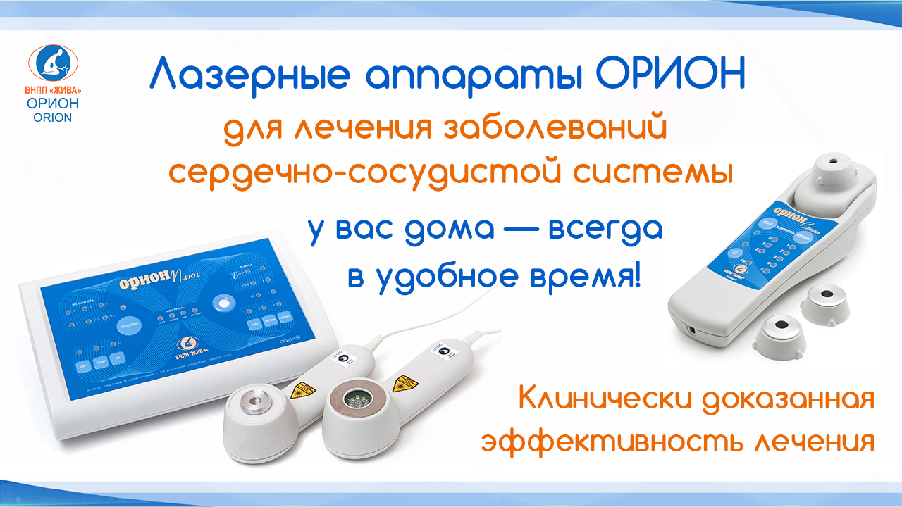 Лазерные аппараты ОРИОН® с 1993 года рекомендованы Минздравом РФ для лечения сердечно-сосудистых заболеваний.