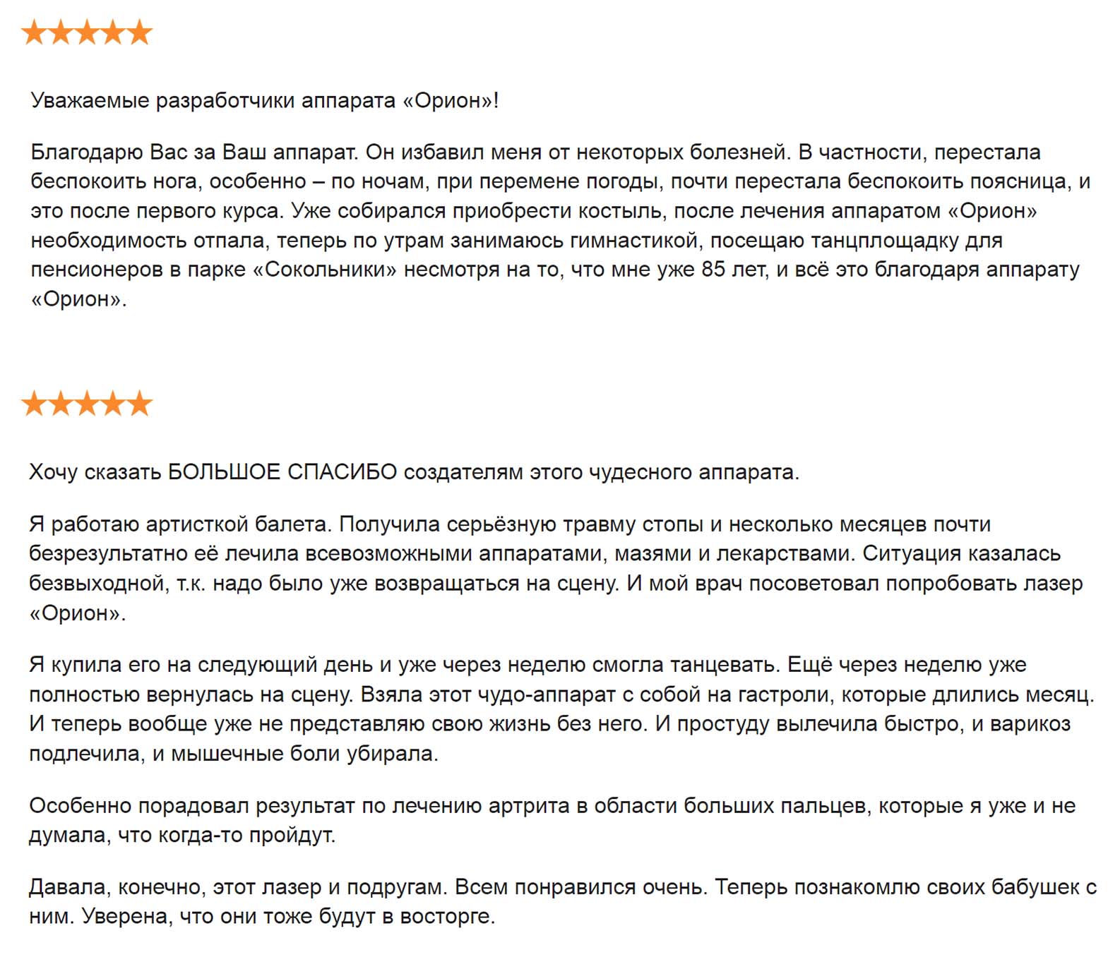 - Лазерный аппарат ОРИОН – это один аппарат для всей семьи для решения любых проблем со здоровьем: от ушибов и насморка до гипертонии, варикоза и остеохондроза. Возрастных ограничений нет. Процедуры стерильные, дезинфицировать аппарат очень просто, поэтому одновременно могут лечиться все члены семьи, даже если кто-то болеет гриппом или ОРВИ. Прослужит такой аппарат более 10 лет.